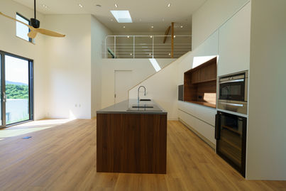 해 뜨는 것을 보면서 요가와 명상을 하고싶다는 소망에 따라 이웃 집 사이에 일출이 잘 보이는 창을 만들어 침실을 정하고, 대지에 자리 잡은 돌을 살려 노천 탕과 같은 욕실을 품은 안마당을 만들었습니다.